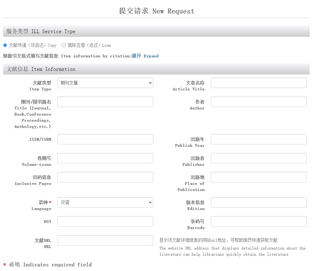 在弹出的电子表单中填写所需文献的相关信息(请尽可能详实)