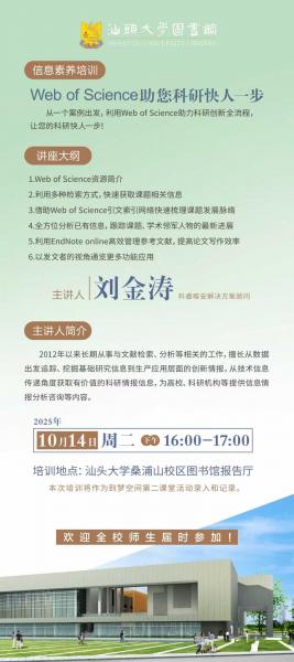 培训地点:汕头大学桑浦山校区图书馆报告厅