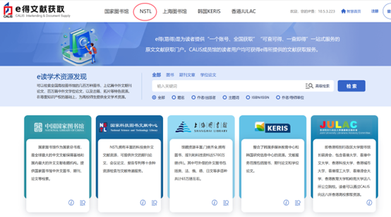 1. 只限于在e得的NSTL资源检索界面(http://www.yide.calis.edu.cn/ ),选择“国家科技图书文献中心”(如下图所示)中检索到的资源;