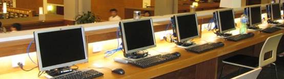 图书馆提供16台惠普 T628 瘦客户机(Thin Client)供读者使用。分布于各个楼层书刊阅览区。