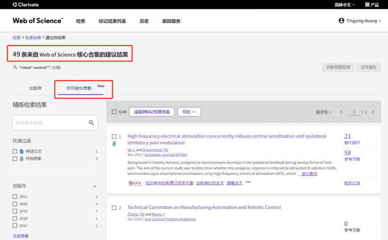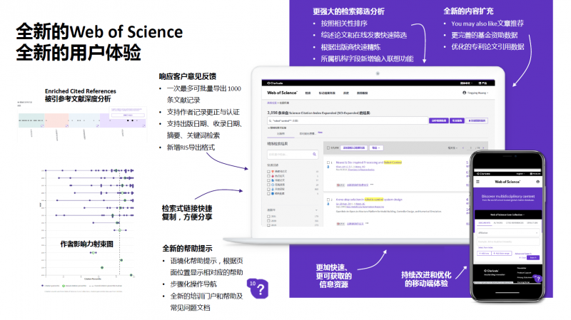 新版Web of Science平台也在持续改进和优化移动端用户体验,希望帮助广大用户随时随刻自由发现,畅享科研。Web of Science My Research Assistant (MyRA) 移动端应用程序(APP)整合Web of Science 和 Master Journal List 数据设计而成,希望能为用户提供更加高效的移动端应用体验。欢迎通过相关阅读中的链接下载体验MyRA APP。