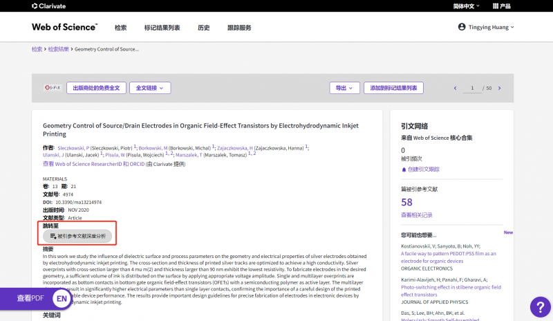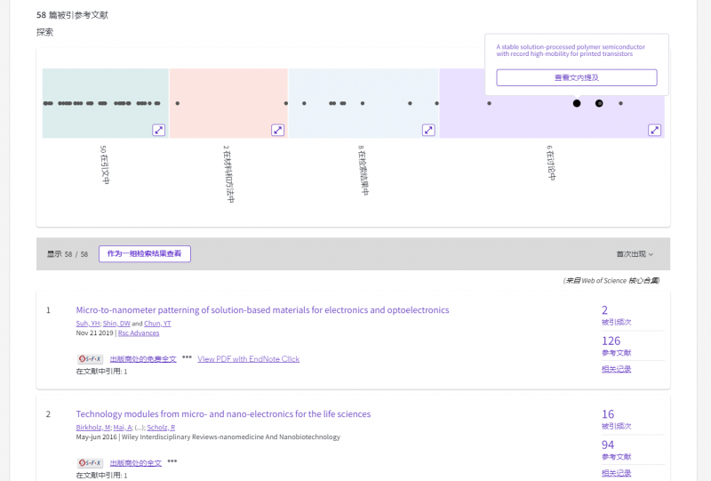 深度分析被引参考文献出现的准确位置,定位引用参考文献的章节,辅助了解引用目的,发现对该篇文献影响较大的参考文献。